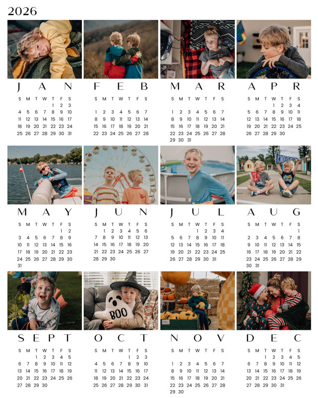 The One Page Photo Calendar is printed on your choice of premium photo paper in just 1-2 business days. Choose your design and upload your photos using our easy drag-and-drop ordering platform.8x10"