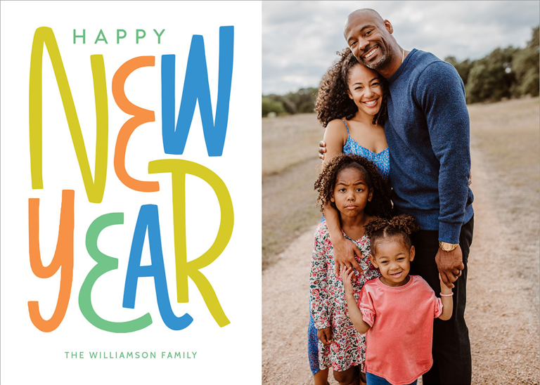 Add your photos and personalized details to make a Happy New Year's Card that’s truly your own with easy-to-use design tools.
