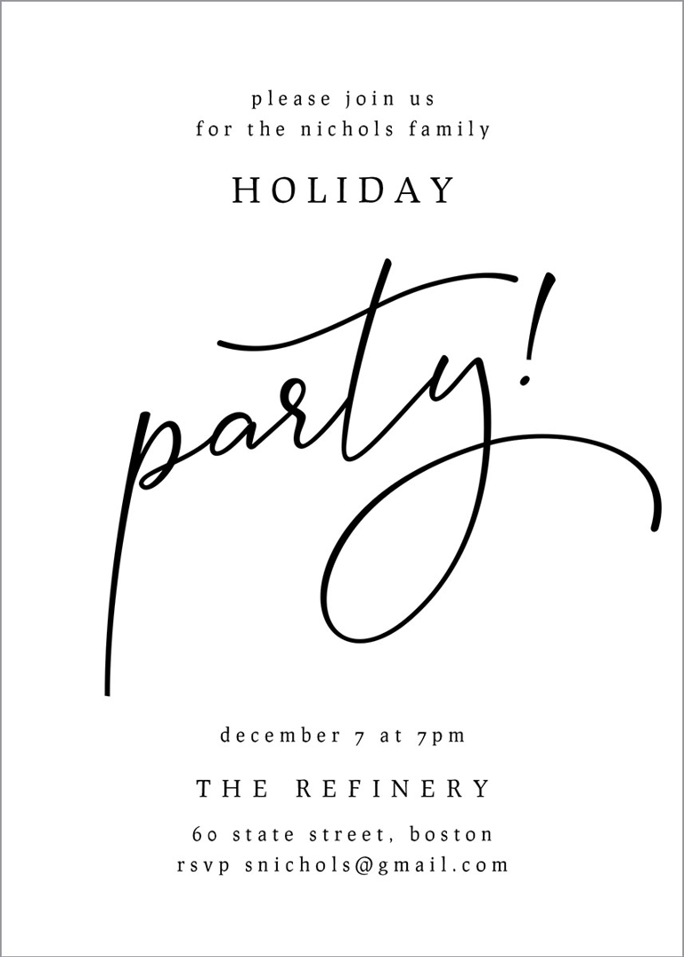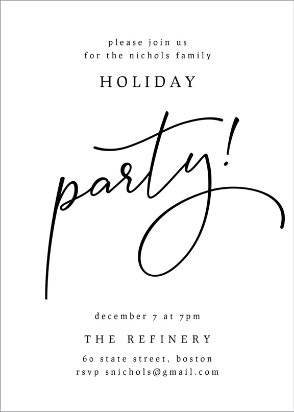 Add your personalized details to make a Holiday or Christmas Party Invitation that’s truly your own with easy-to-use design tools.
