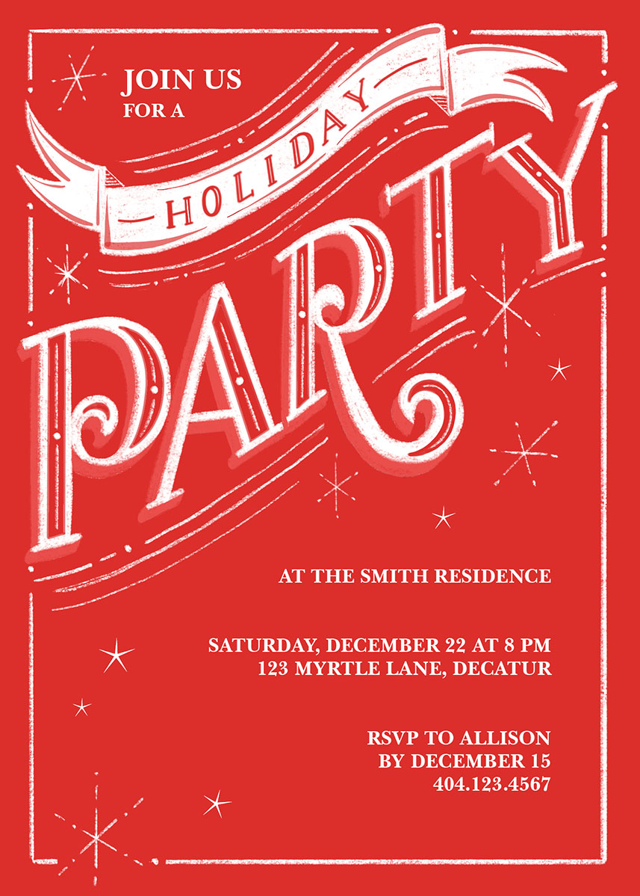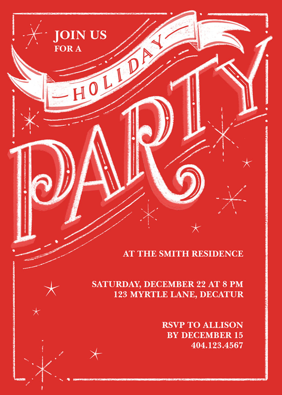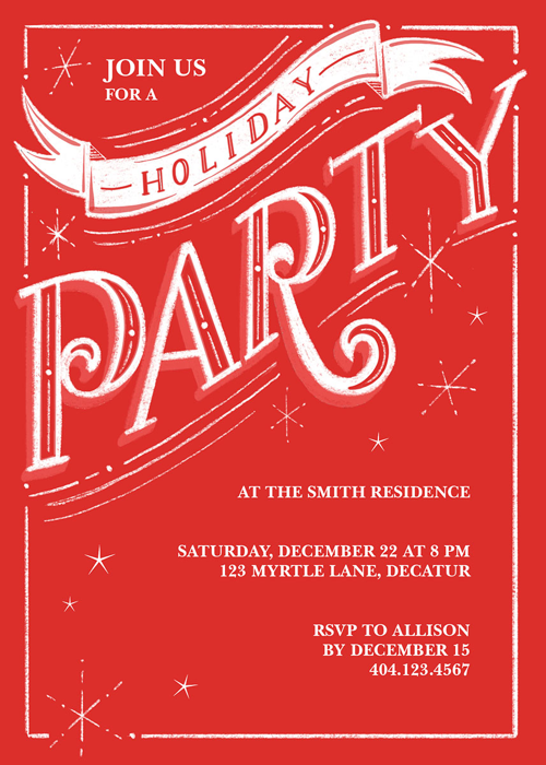 Add your personalized details to make a Holiday or Christmas Party Invitation that’s truly your own with easy-to-use design tools.