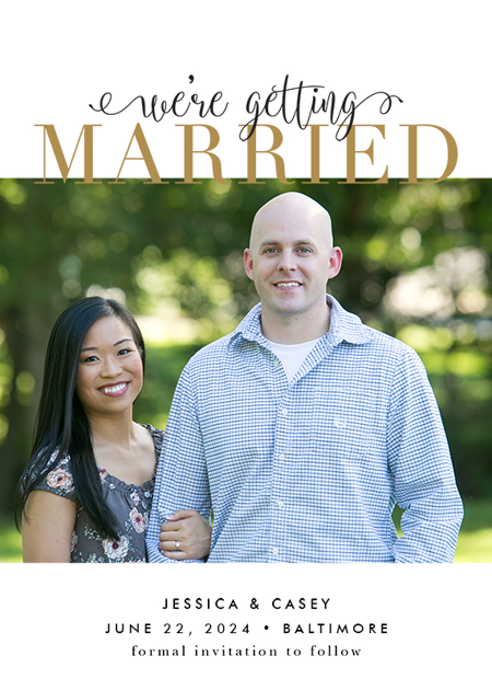 Announce your upcoming wedding with a gorgeous Save the Date card that matches your unique style and theme.