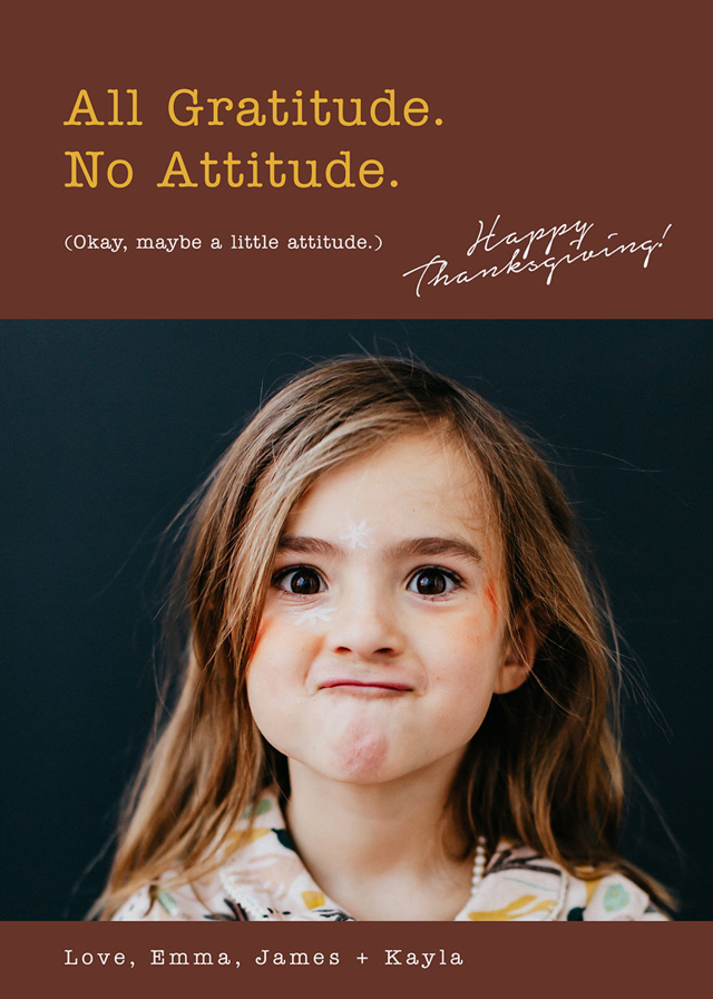 Add your photos and personalized details to make a Thanksgiving Photo Card that’s truly your own with easy-to-use design tools.