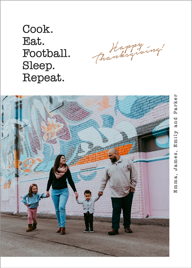 Add your photos and personalized details to make a Thanksgiving Photo Card that’s truly your own with easy-to-use design tools.
