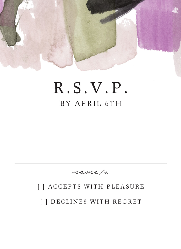 Complete your wedding card set with an artist-designed Wedding RSVP Card printed with premium quality.