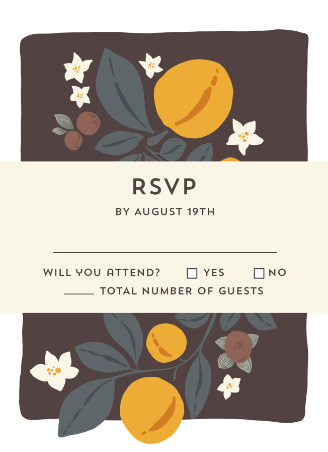 Complete your wedding card set with an artist-designed Wedding RSVP Card printed with premium quality.