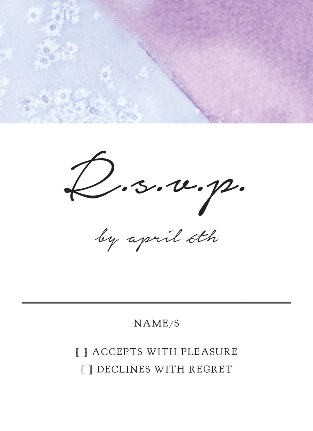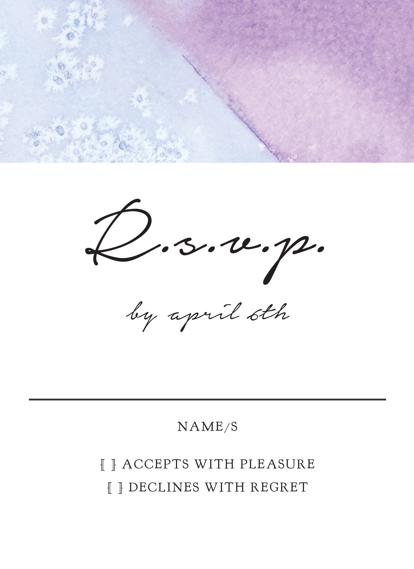 Complete your wedding card set with an artist-designed Wedding RSVP Card printed with premium quality.