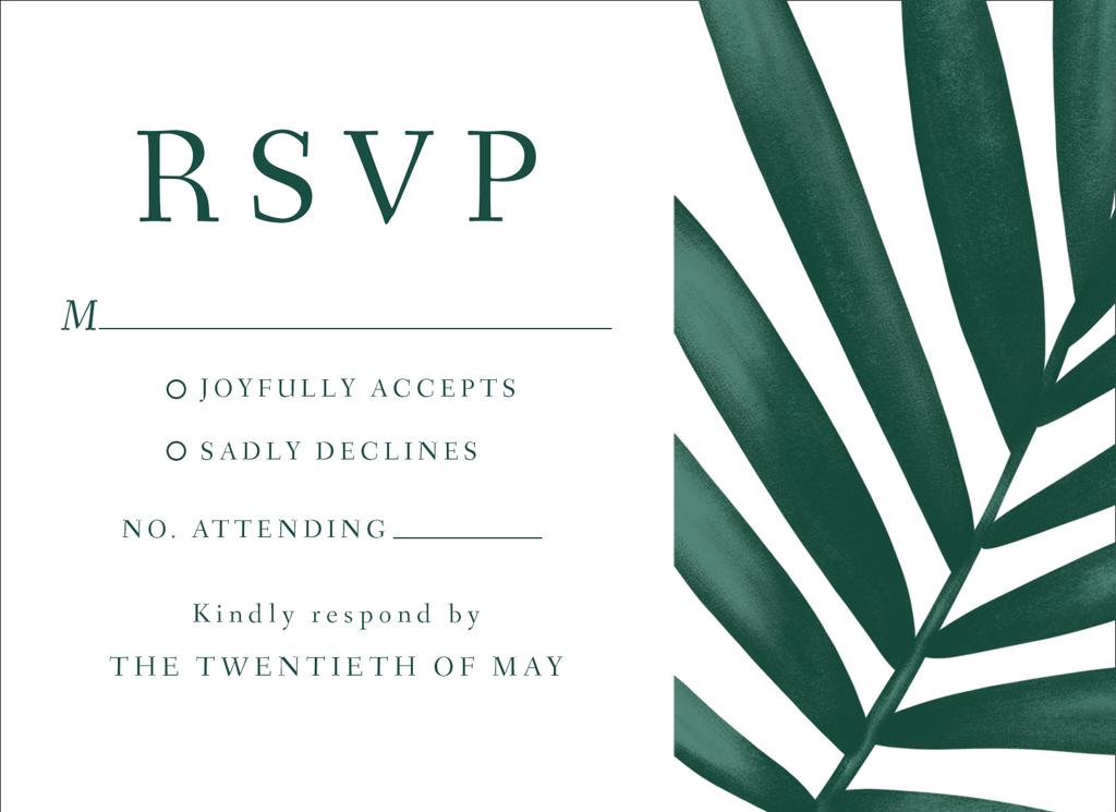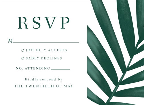 Complete your wedding card set with an artist-designed Wedding RSVP Card printed with premium quality.
