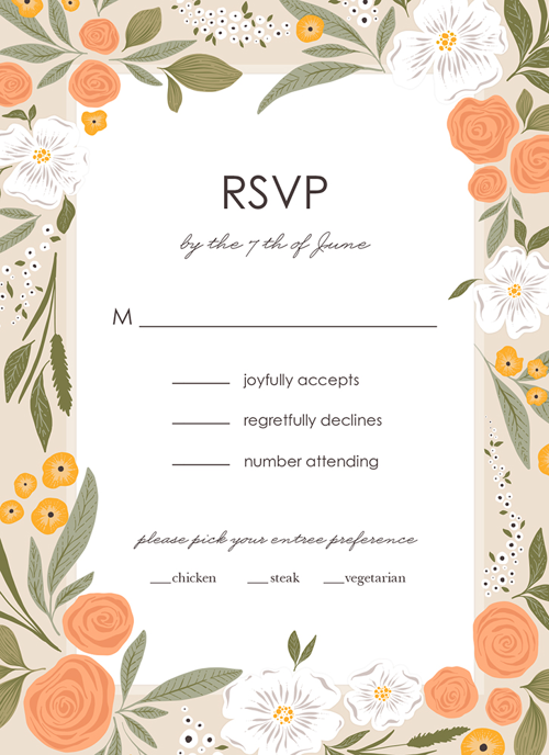 Complete your wedding card set with an artist-designed Wedding RSVP Card printed with premium quality.