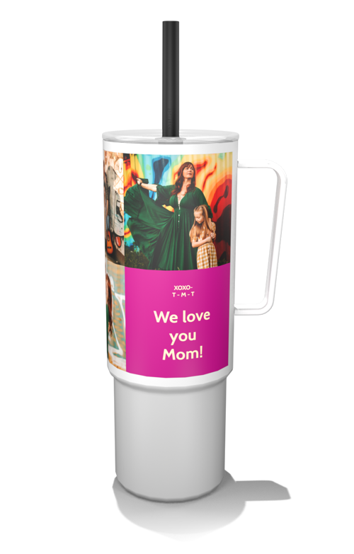 Create a customized 32oz MiiR photo tumbler with a built-in handle and flexible silicone straw for easy, on-the-go hydration.