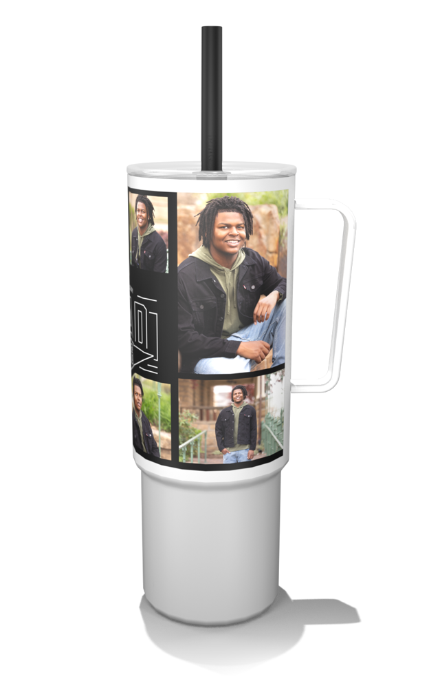 Create a customized 32oz MiiR photo tumbler with a built-in handle and flexible silicone straw for easy, on-the-go hydration.