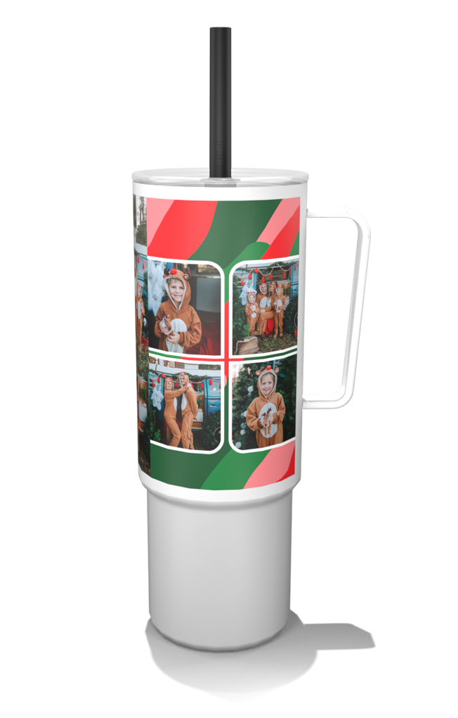 Create a customized 32oz MiiR photo tumbler with a built-in handle and flexible silicone straw for easy, on-the-go hydration.