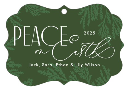 Add a personal touch to your tree this year with a beautiful metal ornament featuring your favorite photos and a festive holiday design. Available in a variety of unique shapes and sizes.Circle: 2.75”