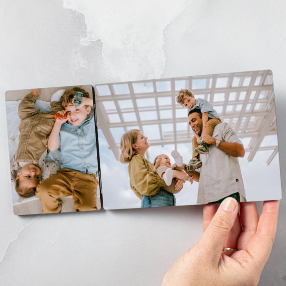 Made with a durable hinge and displaying two photos, the Tabletop Hinged Print is the perfect accessory for your coffee table, desk, or shelf.3.5x5” (vertical) and 7x5” (horizontal)