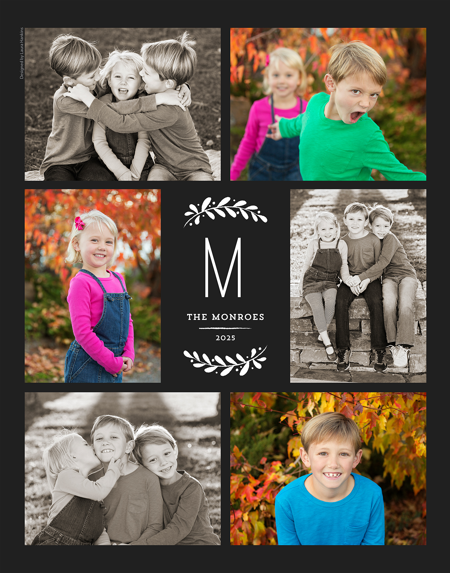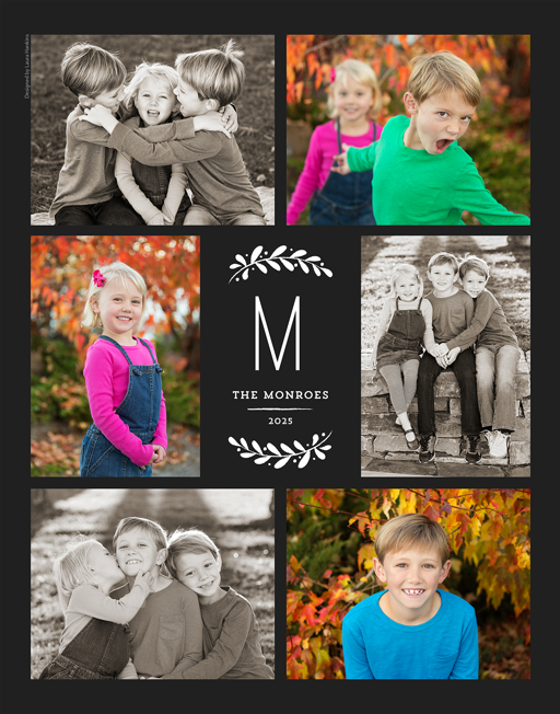 Make a tasteful Photo Collage for your walls with your treasured snapshots and personalize with details like your name, date and more.