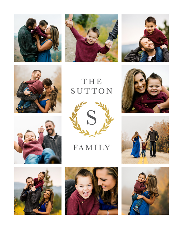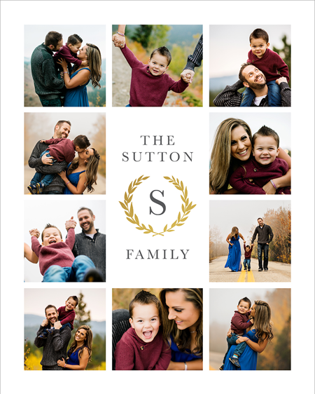 Make a tasteful Photo Collage for your walls with your treasured snapshots and personalize with details like your name, date and more.
