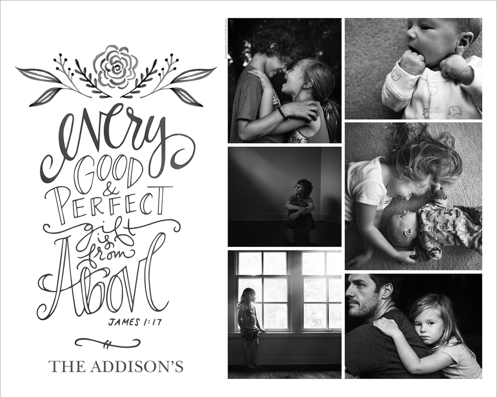 Make a tasteful Photo Collage for your walls with your treasured snapshots and personalize with details like your name, date and more.
