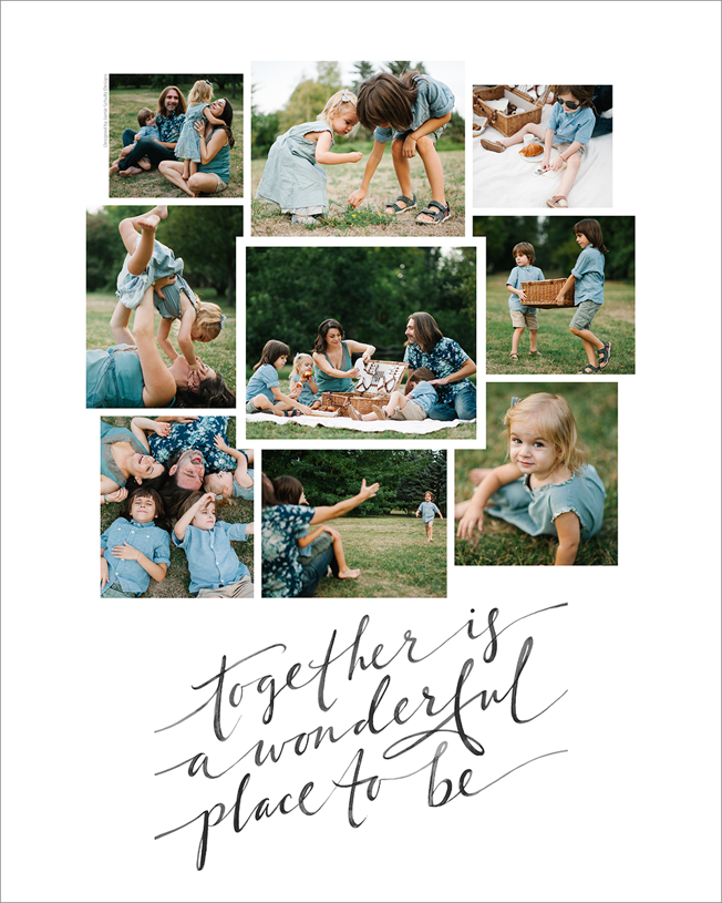 Make a tasteful Photo Collage for your walls with your treasured snapshots and personalize with details like your name, date and more.